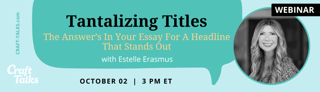 I have been called the “title queen” by my students and bosses. As a magazine-editor-in-chief in the 90s and up till the mid-aughts, I specialized in writing the coverlines, article, column and essay titles for the print publications I worked and wrote for, including Hachette Filipacchi’s Body by Jake, The American Breast Cancer Guide, W.I.T. (Women in Touch), and Esthetique. I also wrote for publications including New Woman and Family Circle, and later the online publications weightwatchers....